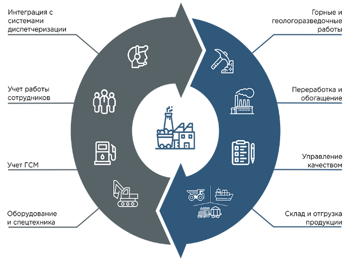 - Формирование данных управленческого учета о выполненных работах и добытой продукции.